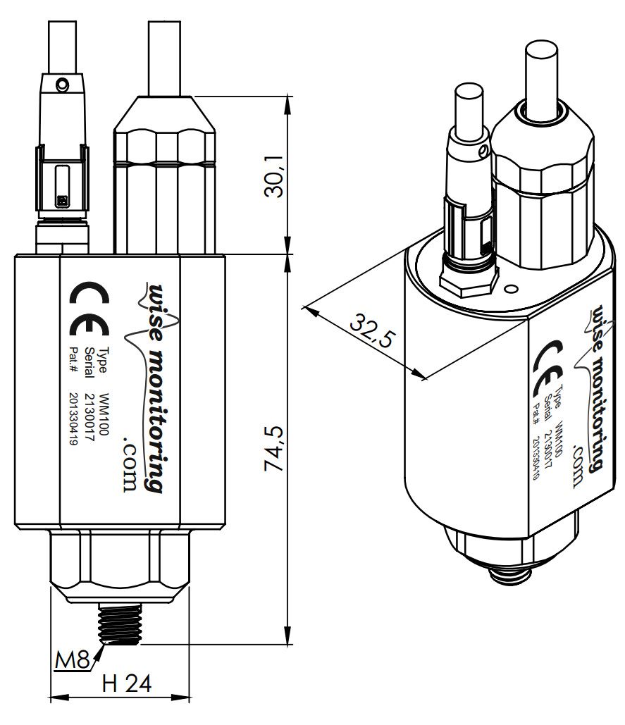 The WM100 vibration sensor measures vibration, providing displacement, speed and acceleration values and their spectral analysis and manage two inputs and two outputs for equipment online protection and condition monitoring.