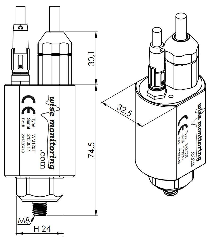 The WM120T vibration and temperature sensor measures temperature and vibration, providing displacement, speed and acceleration values and their spectral analysis and manage two inputs and two outputs for equipment online protection and condition monitoring.