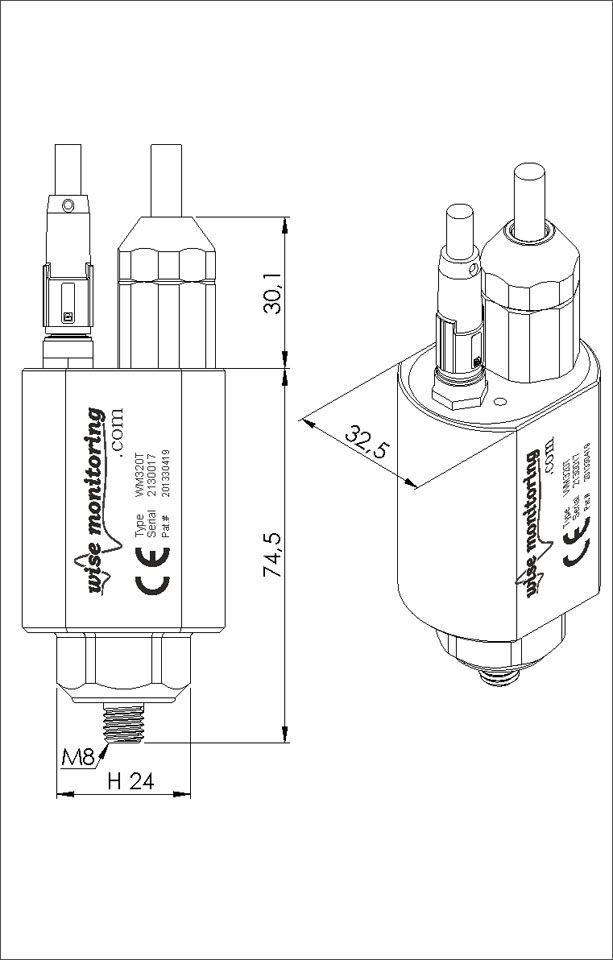 The WM320T vibration and temperature sensor measures temperature and three axis vibration, providing displacement, speed and acceleration values and their spectral analysis and manage two inputs and two outputs for equipment online protection and condition monitoring.